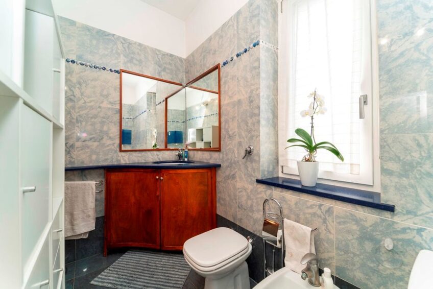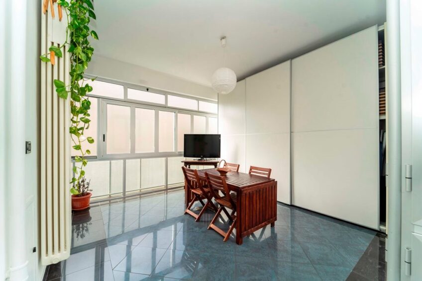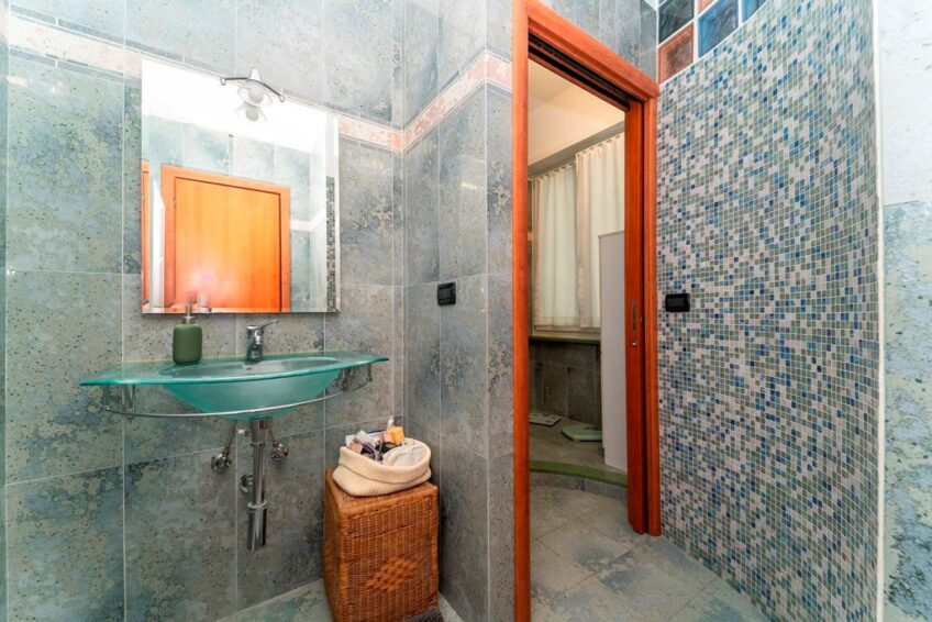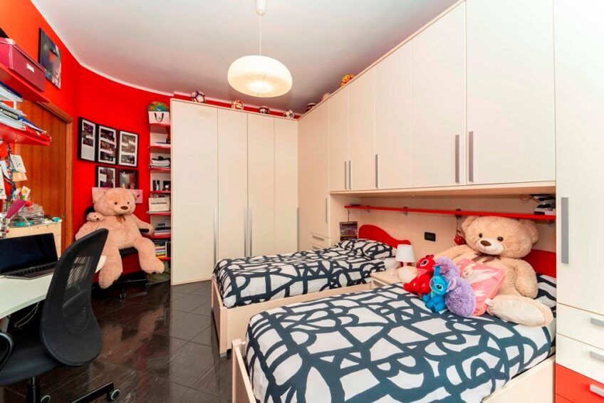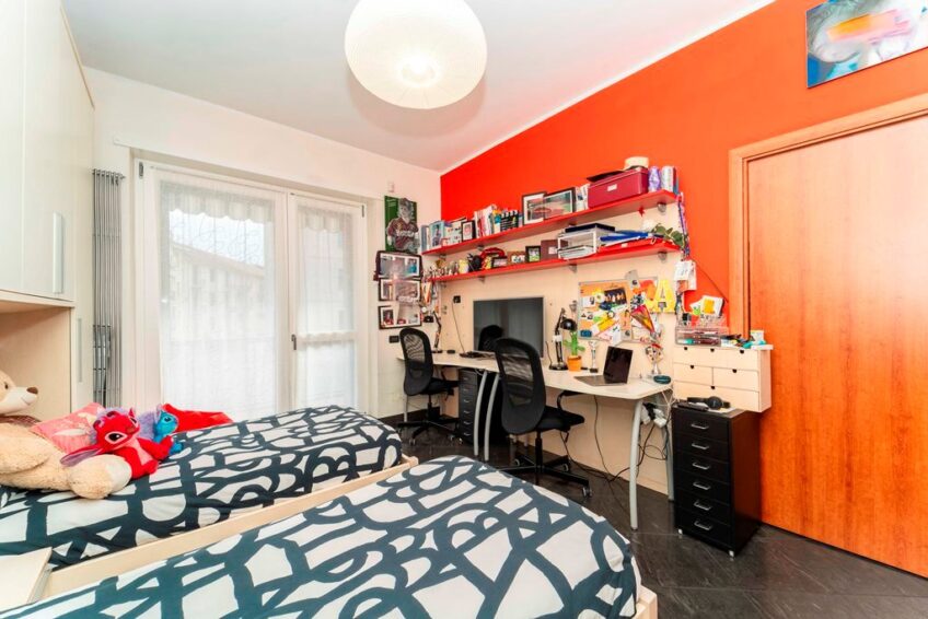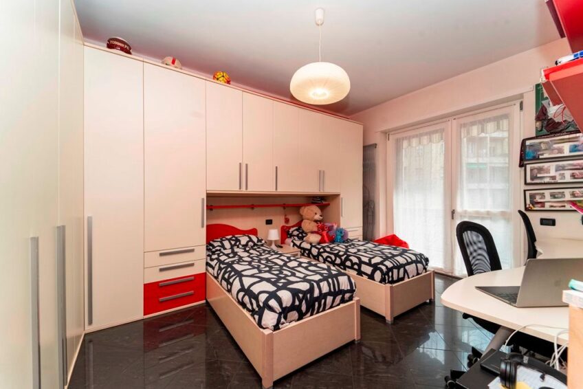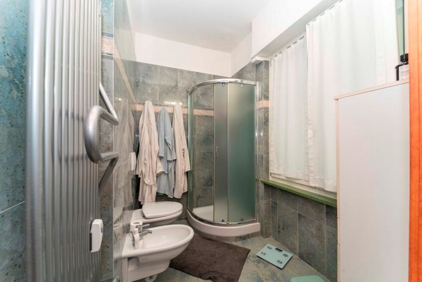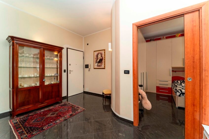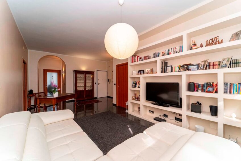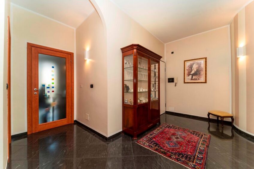 L’appartamento è in perfette condizioni e presenta pavimenti uniformi in gres porcellanato, porta blindata, infissi nuovi in PVC con doppi vetri, tapparelle motorizzate, zanzariere e tende esterne parasole.