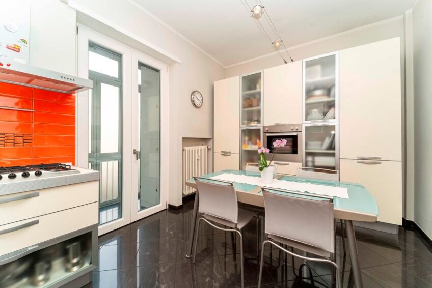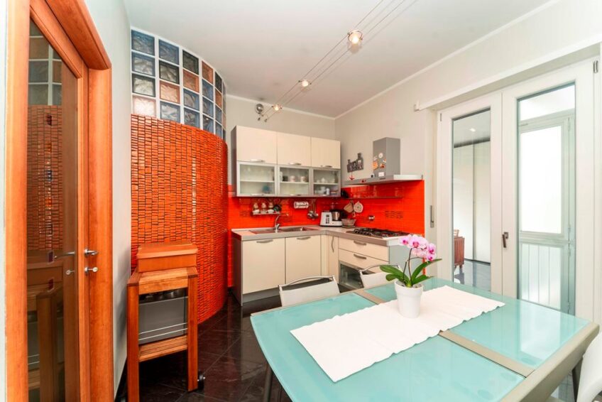 La cucina abitabile, moderna e funzionale si integra armoniosamente con il primo spazioso TERRAZZO di 27 m², attrezzato e perfetto per momenti di relax.