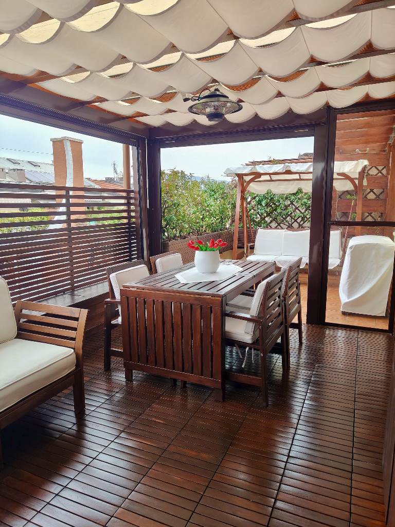 TERRAZZO raffinato, panoramico e silenzioso, attrezzato con zona pranzo e salotto esterno, ideale per vivere gli spazi all’aperto.