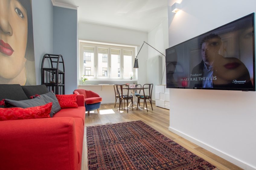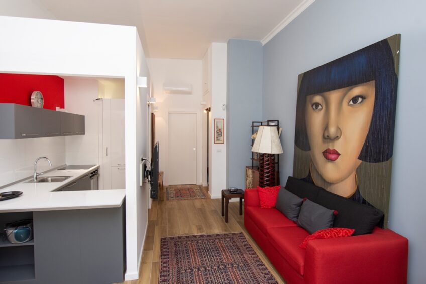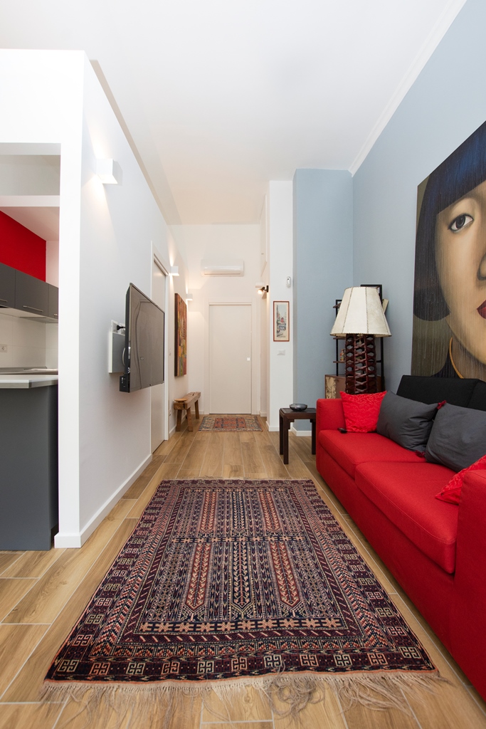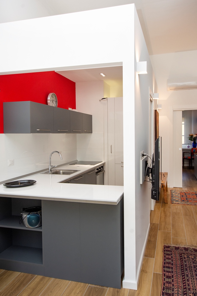 Appartamento ARREDATO e RIFINITO con estrema cura, come da foto, con: cucina angolare su misura completa di elettrodomestici, mobili nuovi, accessori, corpi illuminanti e lampade, elettrodomestici, diversi mobili, armadi, tappeti, lavatrice, televisore da 50 pollici, mobili di design, divano ecc.