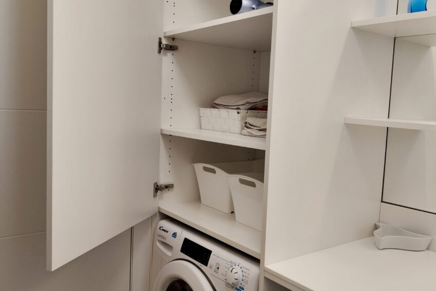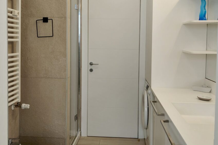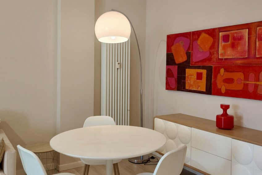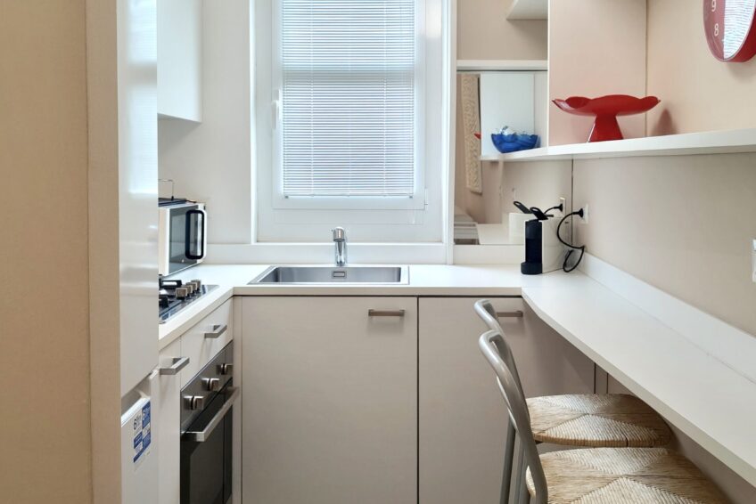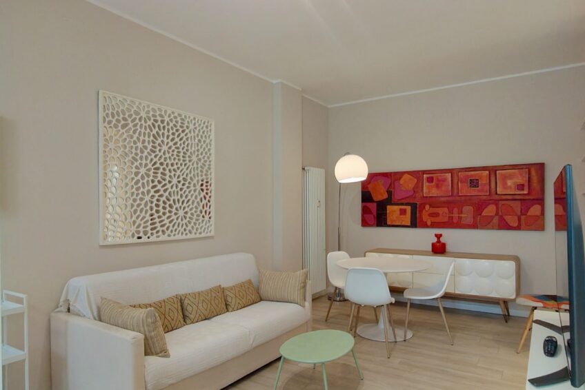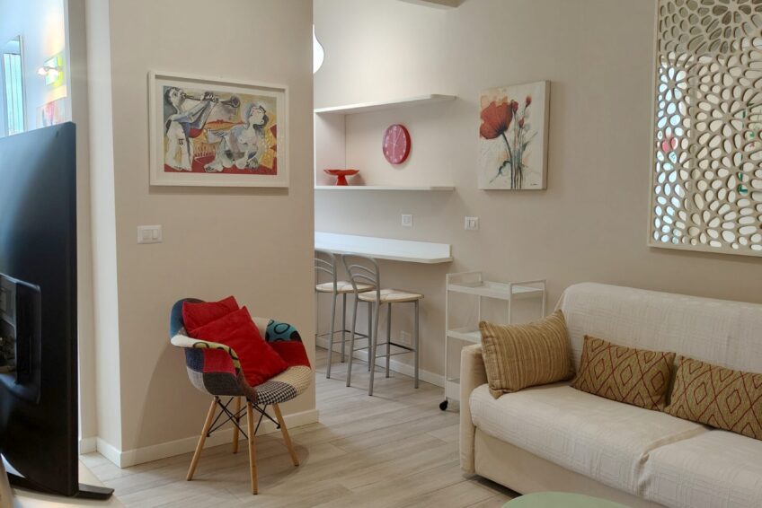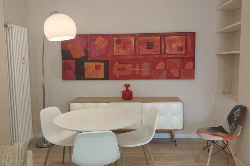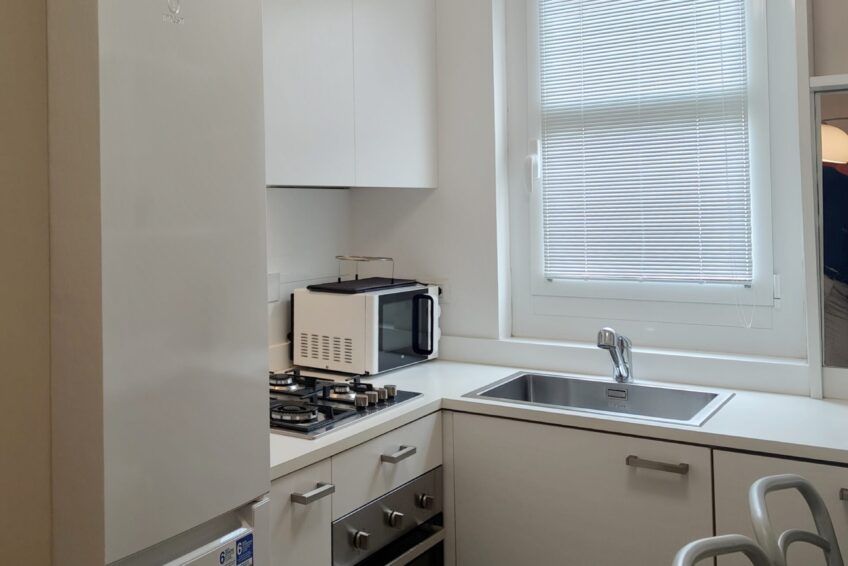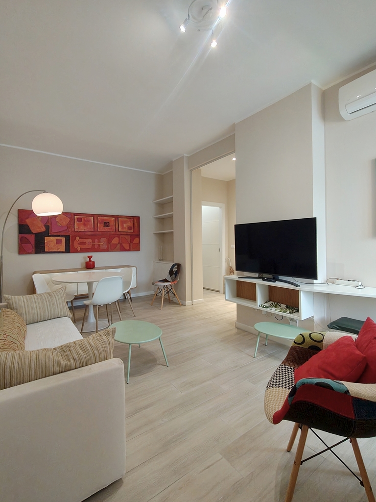 Appartamento RIFINITO CON MATERIALI DI PREGIO, viene locato COMPLETAMENTE ARREDATO ed ACCESSORIATO (come da foto): mobili nuovi, accessori, corpi illuminanti e lampade, elettrodomestici, diversi mobili, armadi, lavatrice, cucina angolare su misura, televisore, mobili di design, divano ecc