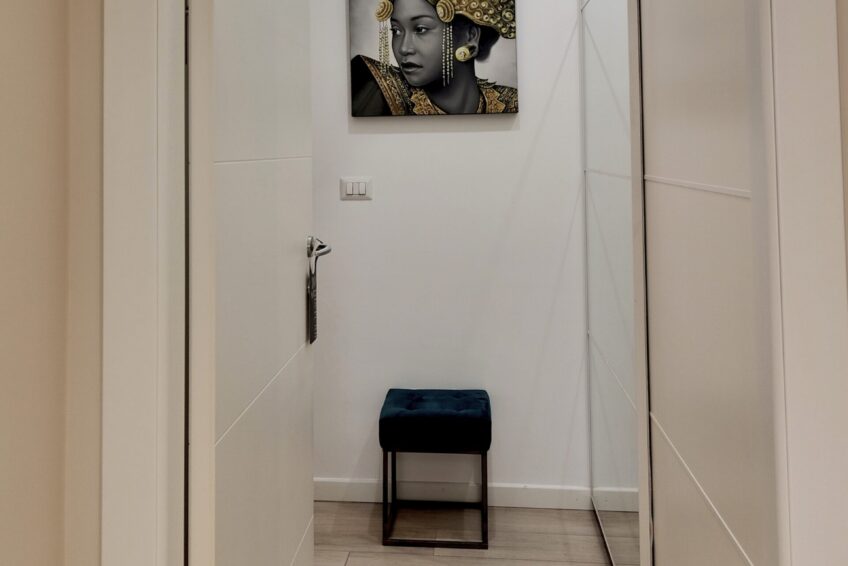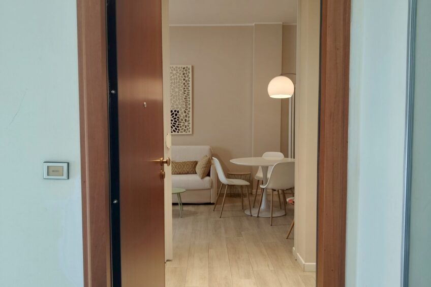 Presenta pavimenti uniformi in gres porcellanato, PORTA BLINDATA, porte interne nuove, infissi esterni in PVC con doppi vetri, impianto elettrico ed idraulico a norma, bagno nuovo con ampio box doccia, termoarredo in tutti gli ambienti. Cucina angolare su misura completa di elettrodomestici. Dotato di due CLIMATIZZATORI con pompa di calore caldo/freddo. Tapparelle nuove motorizzate. Balcone verandato e coibentato che funge da zona relax/pranzo, altro balcone con affaccio sul Corso Traiano. Caldaia a gas a condensazione per la produzione dell’acqua calda sanitaria.