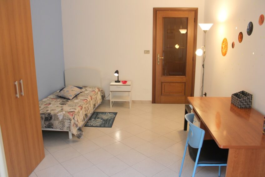 L’appartamento verrà locato COMPLETAMENTE TINTEGGIATO, SANIFICATO ed ARREDATO come da foto: completo di mobili, accessori, illuminazione, elettrodomestici, lavatrice, frigo, cucina, tavolo con sedie, televisore, scrivanie, librerie ed armadi. Presenta pavimenti in ceramica e parquet, PORTA BLINDATA, impianto elettrico ed idraulico a norma, bagno con doccia.