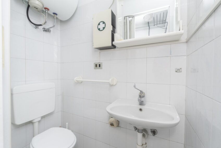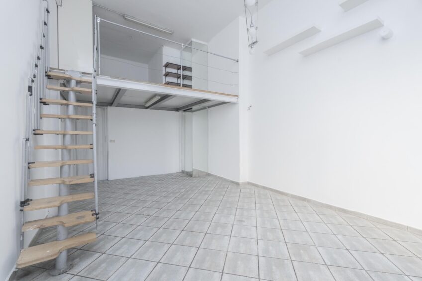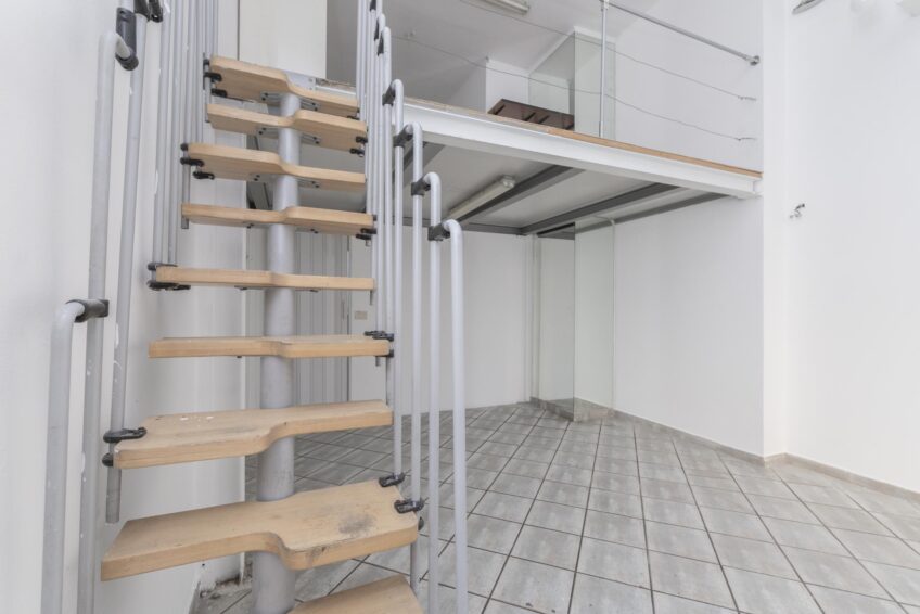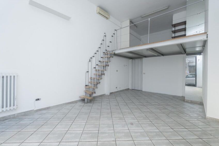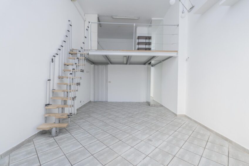 Piccolo bagno interno e ampio soppalco ad uso deposito/ripostiglio di circa 15 mq. con altezza di 2 mt, mentre il negozio ha un’altezza di 4,20 mt.