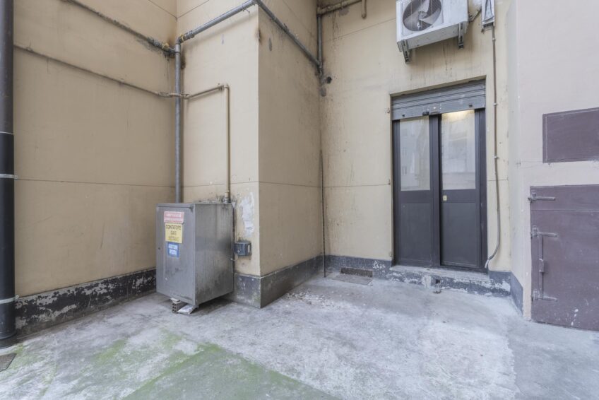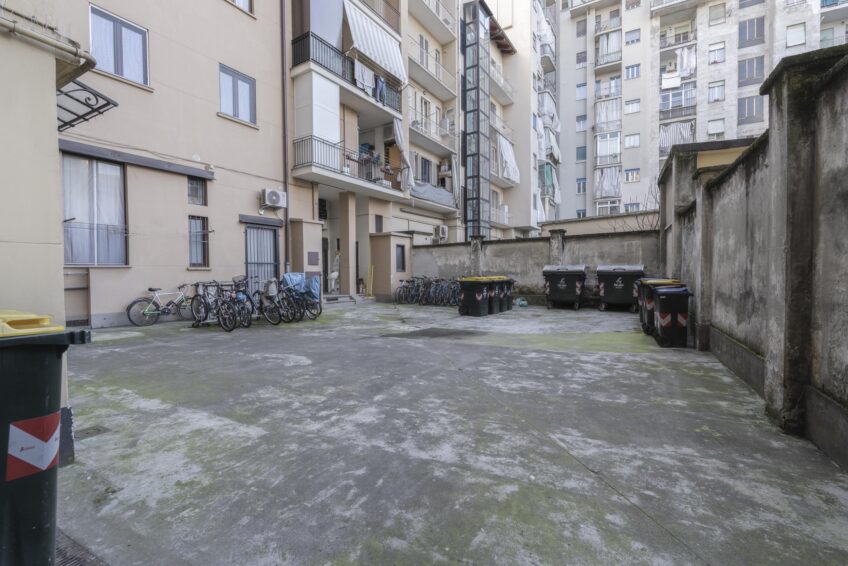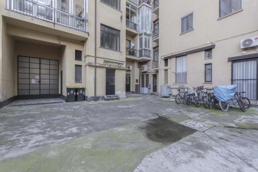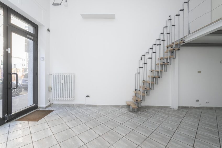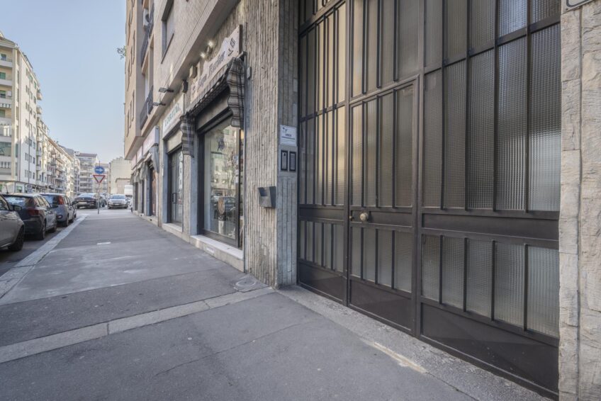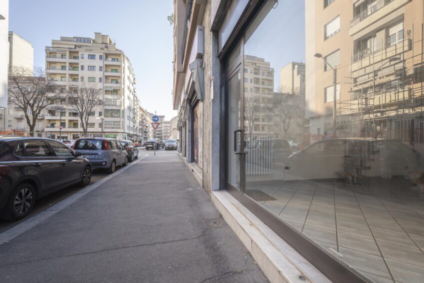 Il negozio ha una vetrina fronte strada sulla via e porta finestra con uscita sull’interno del cortile condominiale.