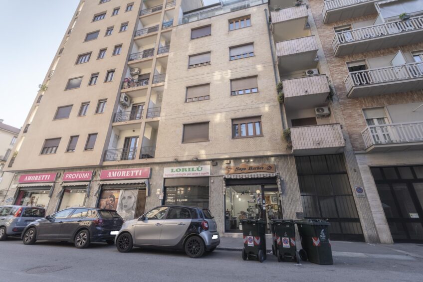 Si trova a pochi metri da C.so Sebastopoli e dal mercato rionale, forte scorrimento auto e pedonale, e a 2 minuti dal parco di “Piazza d’ Armi”.