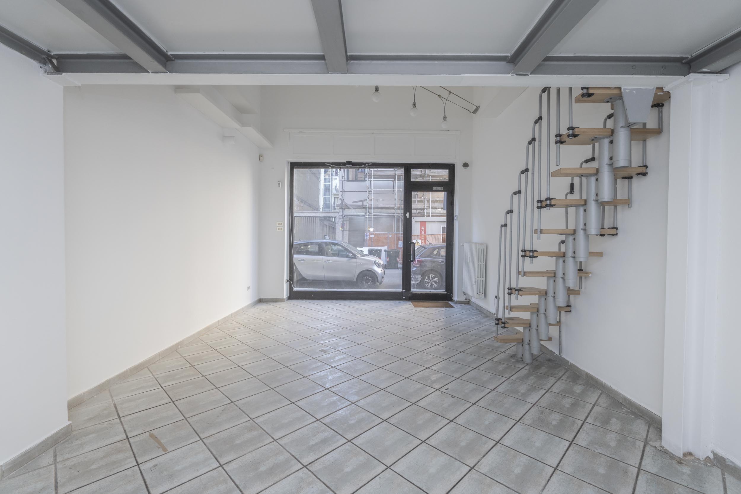 Il negozio ha una vetrina fronte strada sulla via e porta finestra con uscita sull’interno del cortile condominiale.